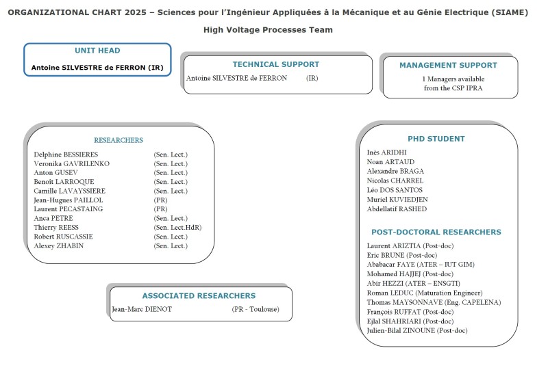 The areas of research of the team can be divided into two categories: High-voltage generation and processes and Multiphysics modeling, characterization and optimization.